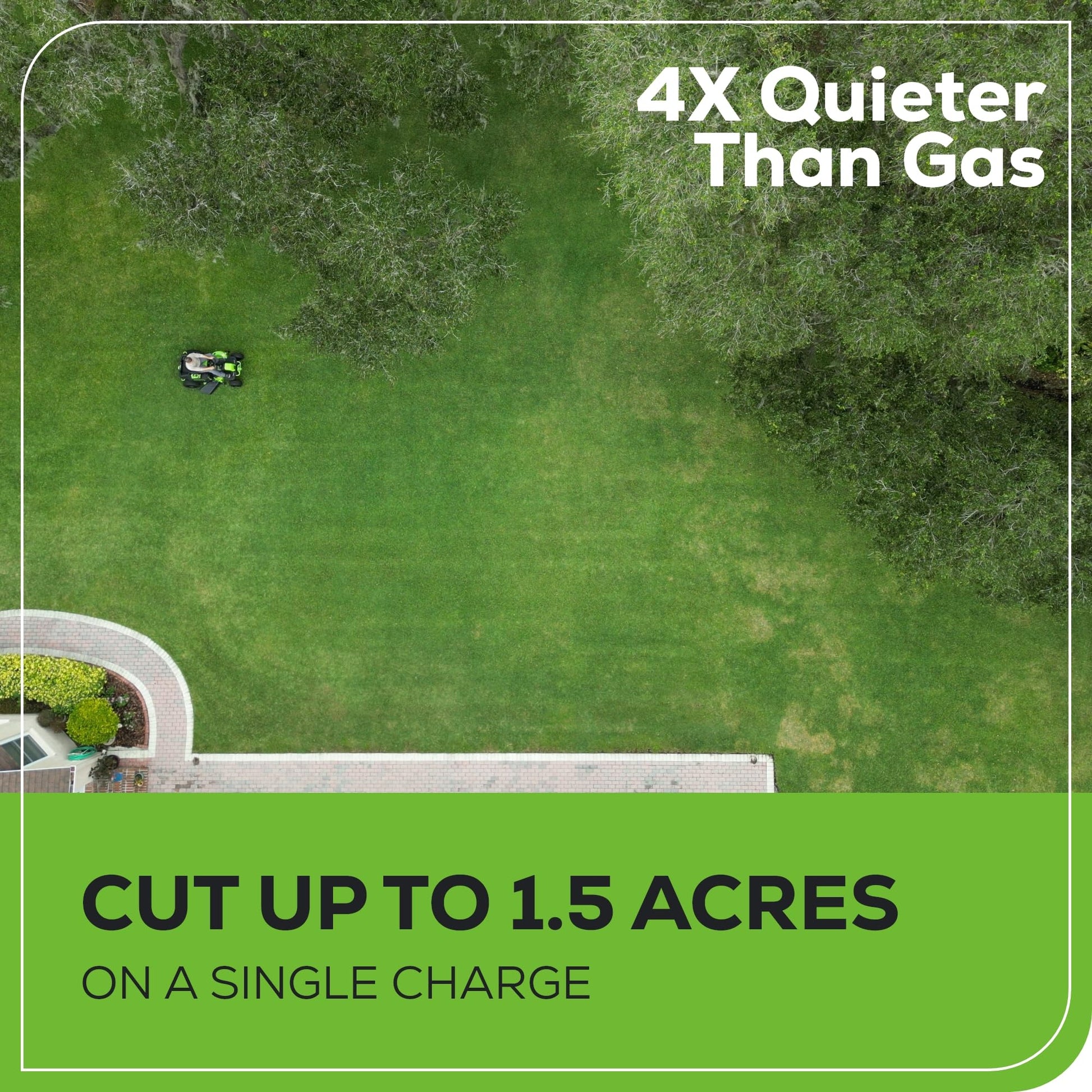 - [42” DECK + BRUSHLESS MOTOR] - This electric riding mower features a durable 42" deck, and a highly efficient brushless motor that provides more torque, quiet operation, and longer life