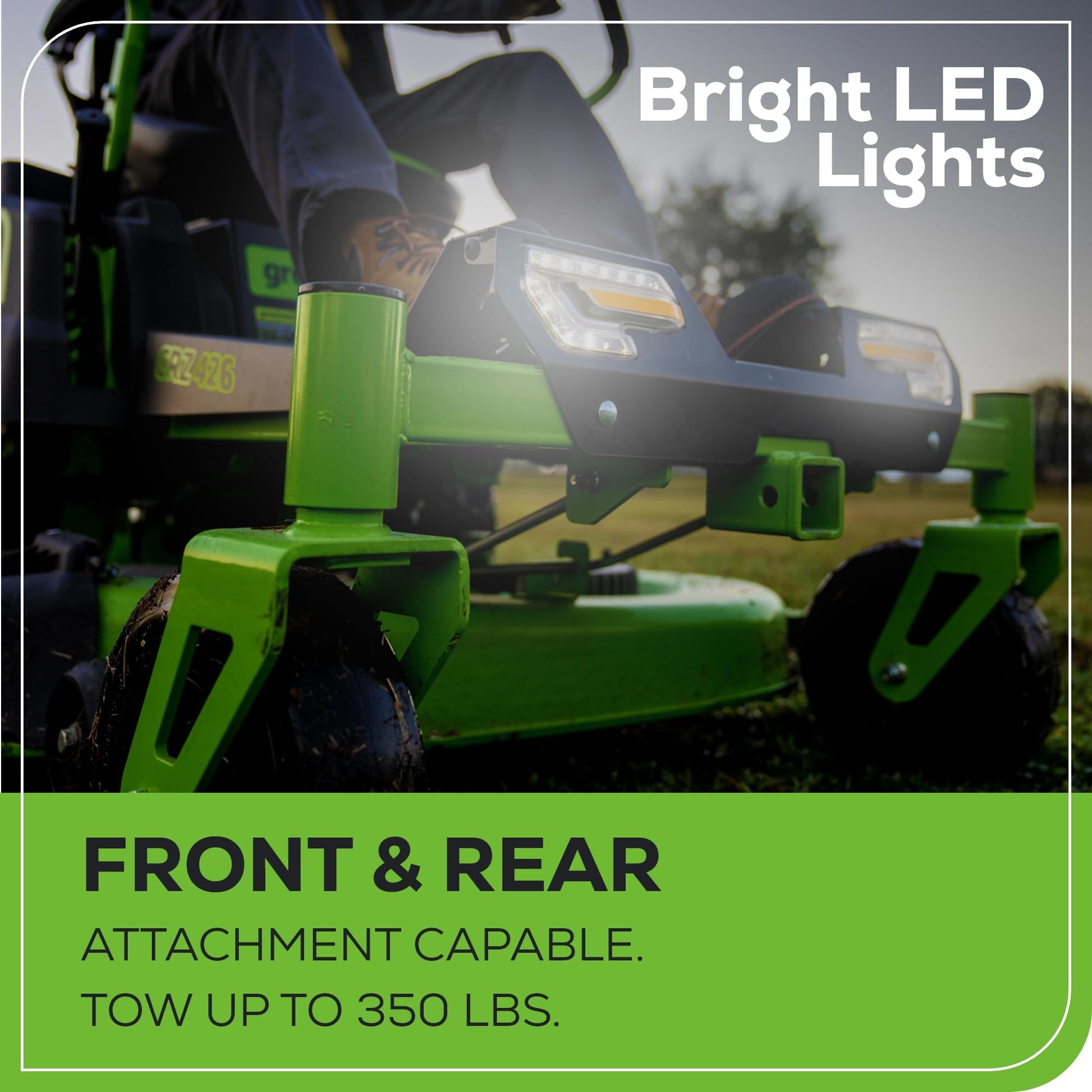 - [LED HEADLIGHTS] – Beat the heat with high-visibility LED lights allowing for early morning and late evening mowing