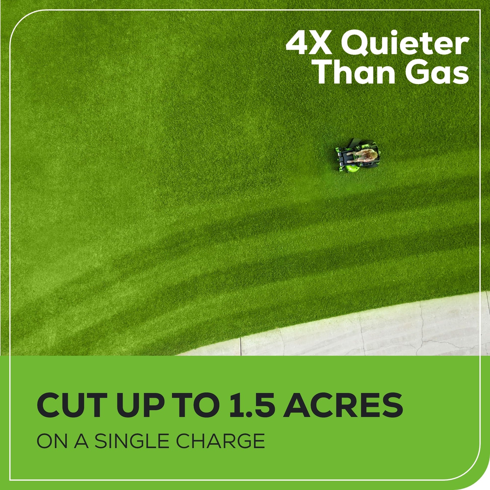 - [MAINTENANCE FREE] - This zero-turn lawn mower is virtually maintenance free, with no gas, no oil, and no emissions. It starts instantly, is quiet, and delivers the power you need